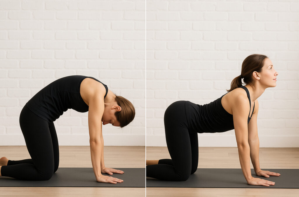 胸椎中心で丸める→反らすを繰り返す。腰を反らせすぎない。